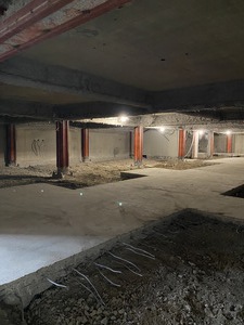撤去完了の写真となりますが、階高は低いものの0.08BHと人力での併用した土間解体工事。また搬出作業ではボブキャットを使用しスムーズに搬出作業を行い
